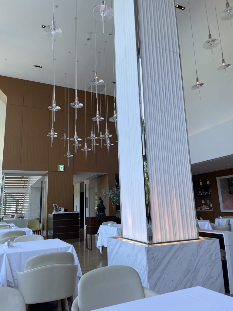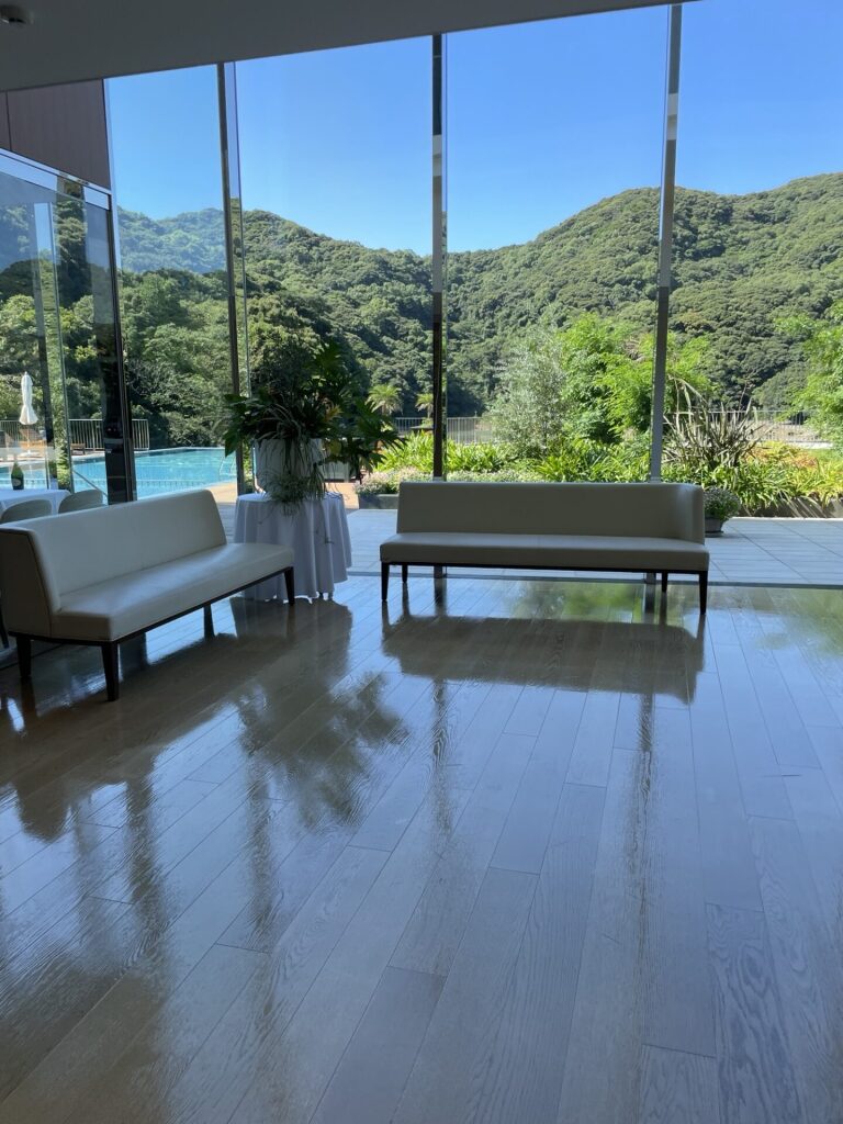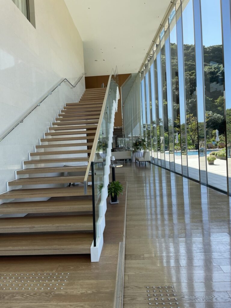 大島造船所の迎賓館としてのルーツを持ち、『隈研吾』氏が設計を手掛け、内装は『GA Design International』社が手がけているそうです。