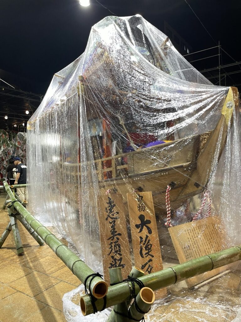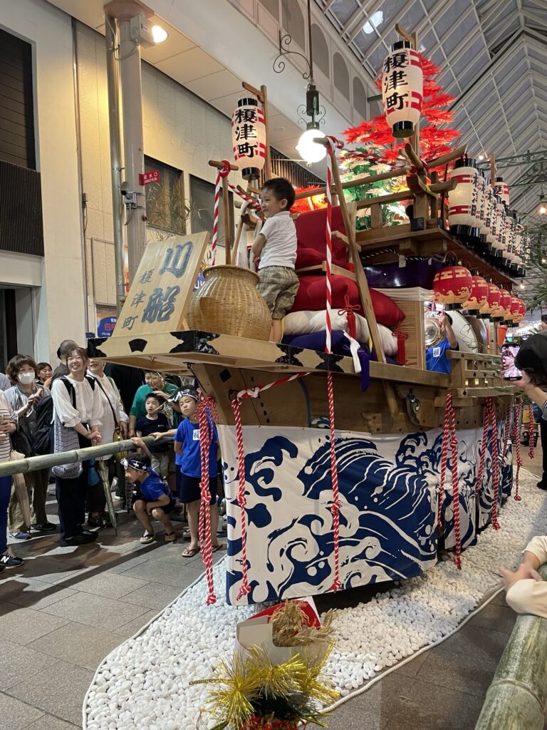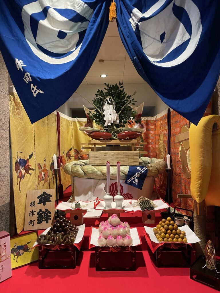 賑町は傘鉾、大漁万祝恵美須舟です。網には本物の伊勢海老が!