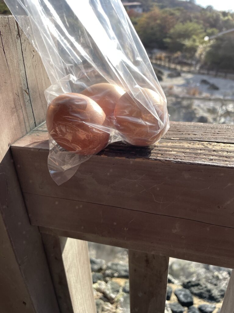 島原そうめんの乾燥する前の生めんとメレンゲ、卵黄、鰹節に暖かい出汁をかけていただきます!
