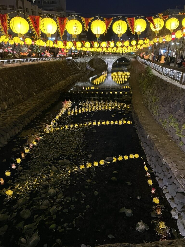 中島川の黄色い燈會と眼鏡橋、ハートストーンを、、