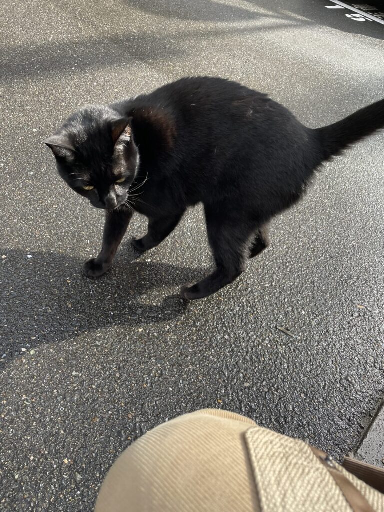 この日は麹屋町の駐車場に黒のメス猫がいて、目が合うと寄って来てスリスリするので優しく撫でていると突然ガブリとやられました(笑)