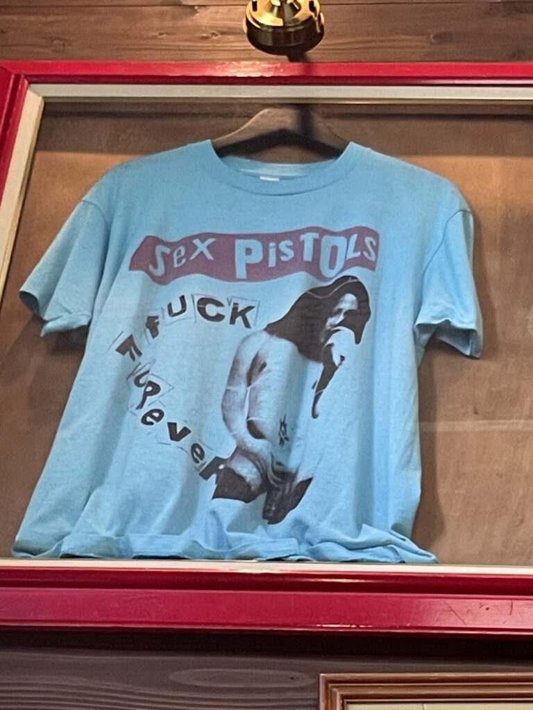 店主さんはもともと古着屋さんを経営していたそうで凄く希少な『ピストルズ』のTシャツが額縁に入っていました^_^