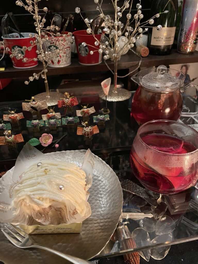 仕事帰りにフルーツティーに合わせるケーキを買って1人雛祭りを楽しみました^_^
