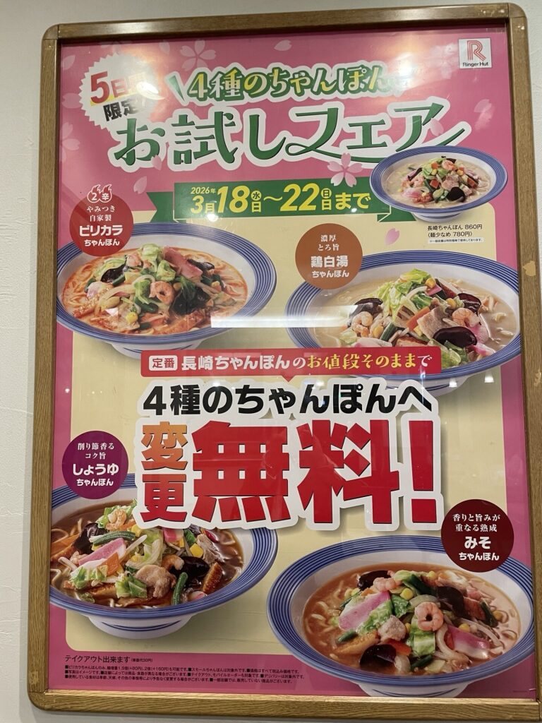 3月18日(水)は仕事帰りにリンガーハット出島店さんへ行って来ました^_^
